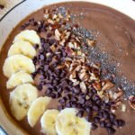 With a rubber spatula, scrape out the smoothie into a bowl. Sprinkle with your favorite toppings, such as chia seeds (for extra protein), chopped nuts, sliced bananas or berries, mini dairy-free chocolate chips, or granola.