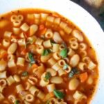 Pour in the water and vegetarian bouillon, and bring the mixture to a boil. Add in the pasta and drained and rinsed beans. Reduce the heat and simmer for 10-12 minutes, or until the pasta is tender.